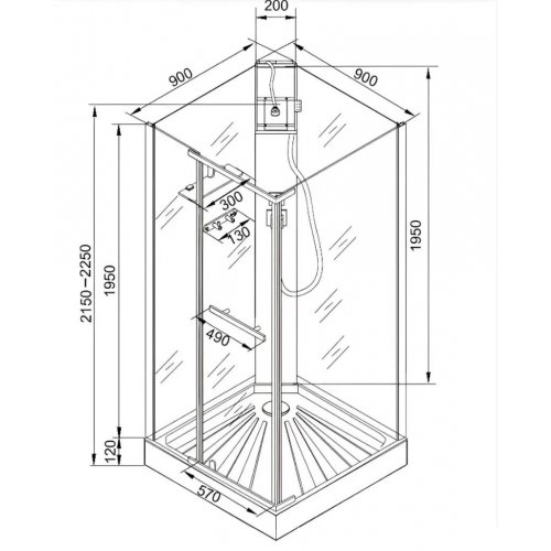 - Верхний душ - алюминиевый с регулировкой высоты 5 см + 5 см (регулируется до установки)