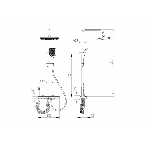 Регулируемая высота да (от 930 до 1065мм над с полкой смесителя)